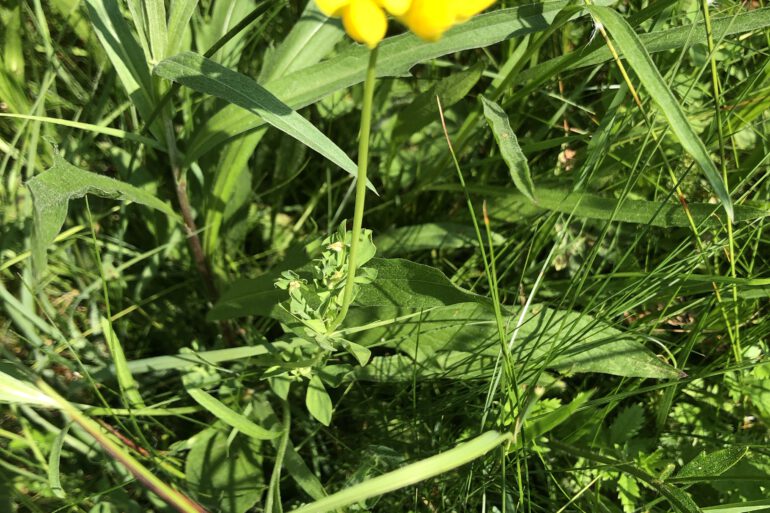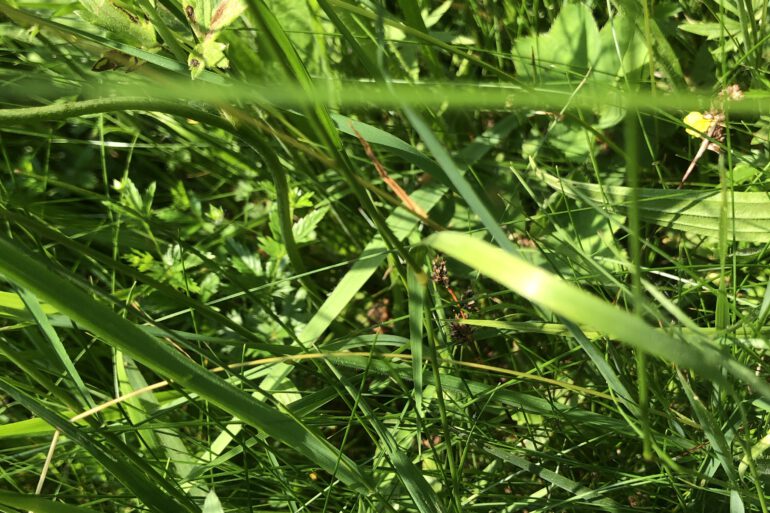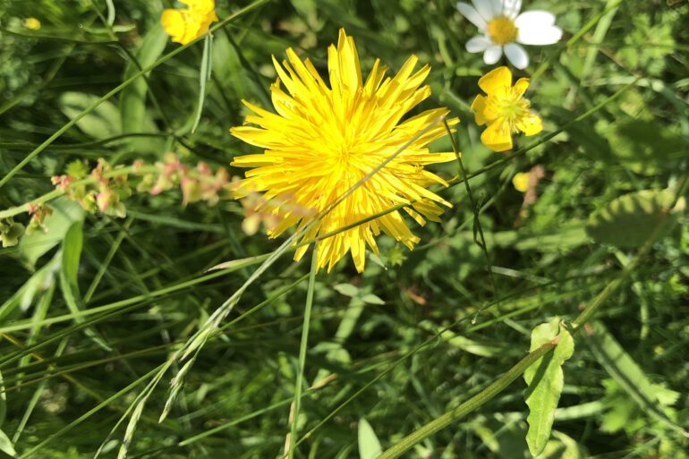 Immer wieder fahre ich neugierig zur Wiese, um nachzusehen, ob die Wiese denn schon gemäht wurde. Aber noch steht das Gras bis zu 1 m hoch und die vielfältigsten Blumen blühen. Für viele Insekten wie Käfer, Spinnen, Heuschrecken und Schmetterlinge beginnt jetzt ihre beste Zeit. Deshalb kann die Mähung ruhig noch etwas warten. Kein Löwenzahn
